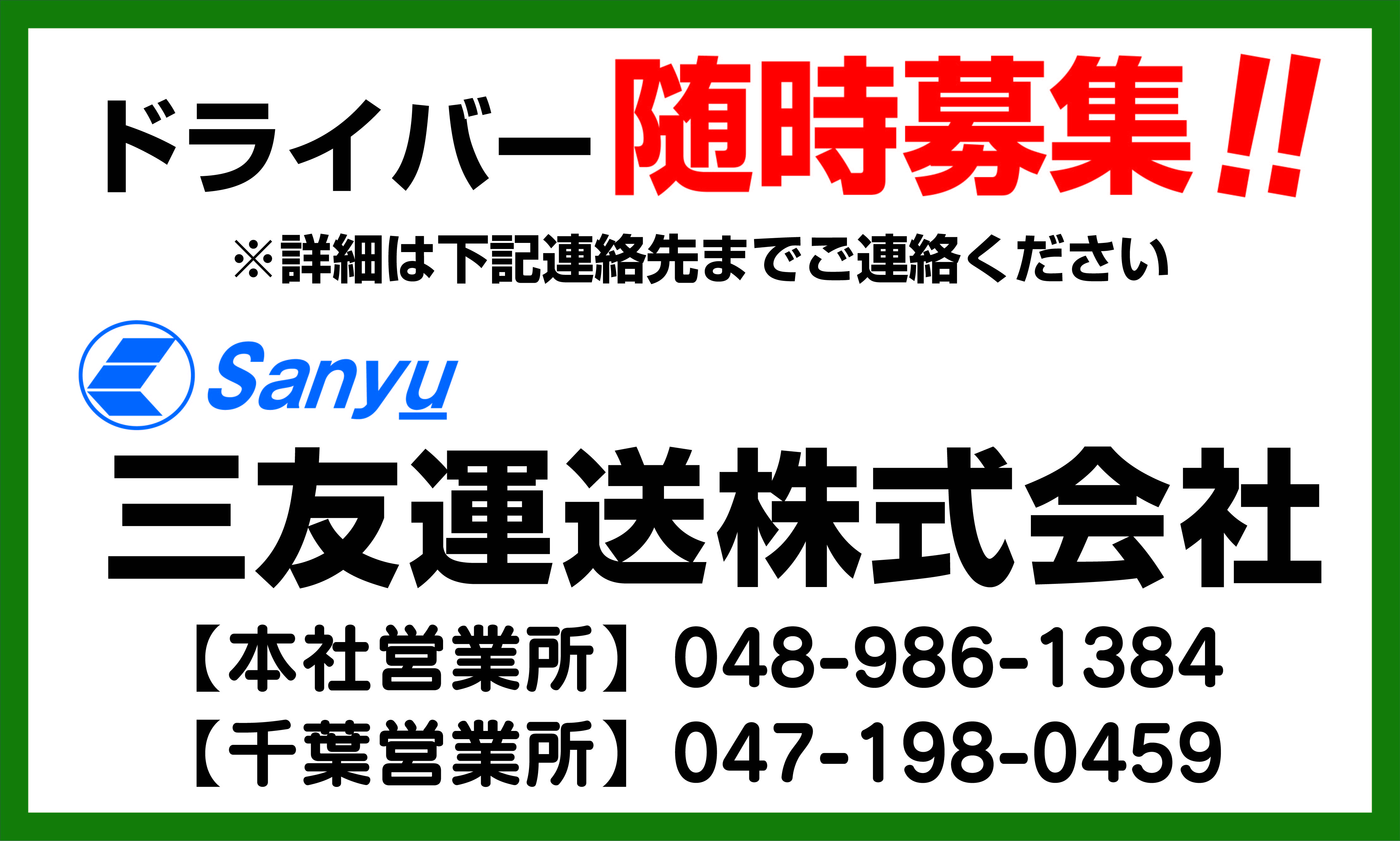 只今、当社では本社営業所にて2tドライバー1名、 千葉営業所にて4tドライバーを2名募集しております。 詳しくは採用情報よりご確認ください。 たくさんのご応募お待ちしております!